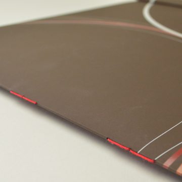 Quant à cette reliure cela consiste, à partir d’une brochure cousue à rapporter des plats (dessus et dessous) plus ou moins rigides. D’autre part la tranche peut être entoilée ou laisser apparaître la couture pour un effet graphique naturel.