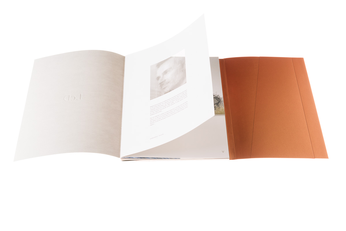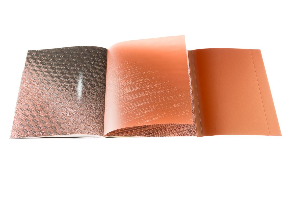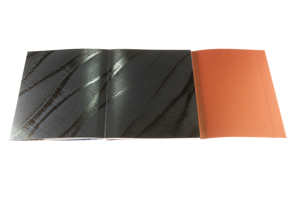 La couverture de ce très beau livre est composée d’un quatre pages enveloppant avec un façonnage dit « à la suisse ». Une subtile aimantation permet au livre de former un bloc compact.